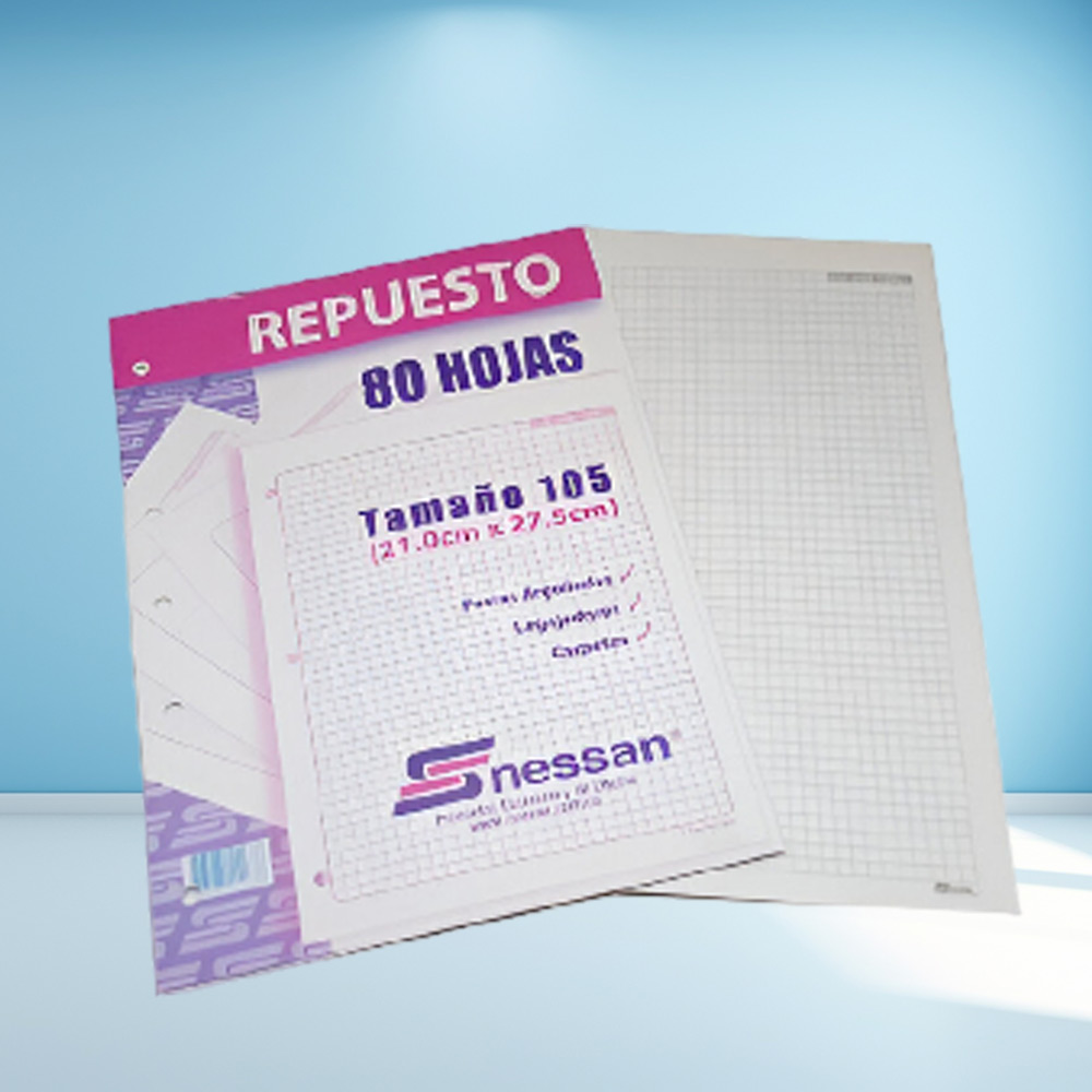 Hoja de repuesto para folder 95 cuadriculada con márgenes en colores
